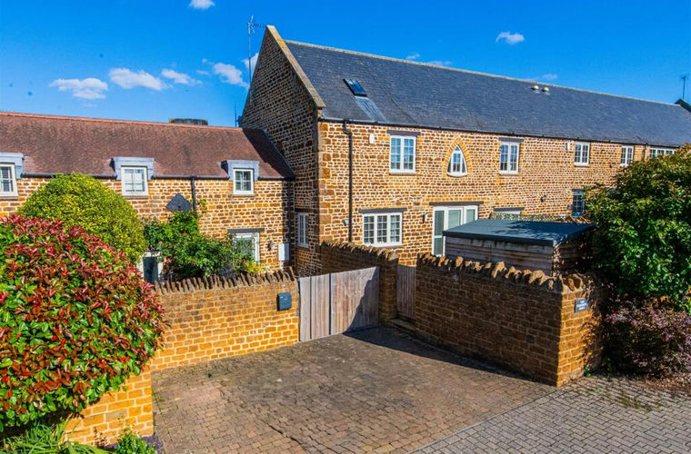 Set within the highly sought-after Bell Hill area of Finedon, this stunning three-storey, stone-built barn conversion combines character features with modern family living. Positioned behind secure gated access with a charming stone wall frontage, the property offers off-road parking for two or more vehicles side by side.