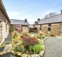 Traditional farmhouse and barns sympathetically converted into spacious and flexible 5 bedroom home with 4 large reception rooms, large kitchen/diner & 4 bathrooms. This Wye Valley property features large office, 2 utility rooms, large garage with granary above, detached stable, storage sheds, gardens and grounds extending to 3.77 acres. Accessed along the former route of the Mid Wales railway line, it is situated in open farmland approximately 100ft above the River Wye and offers spectacular views of the Wye Valley and surrounding Welsh mountains. EPC - E.