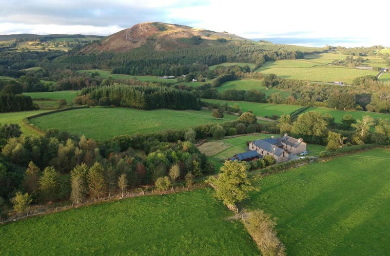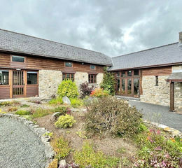 The property is approached beneath the former stone railway bridge along a hard stone road following the route of the former Mid Wales railway line. The track is shared with surrounding grazing land and leads to the private driveway up to the house and gravel parking and turning area in the central courtyard. This south-facing courtyard has stone edged flowering and herbaceous beds. Around the dwelling are grassed grounds which extend to the detached stable block. The land was once all laid to pasture but has been, in part, planted with mixed native hardwood trees of various species by the current owners over the past 30 years to provide an attractive woodland area. There are still clear grassed areas creating a wildflower meadow bordered on one side by a stream which could be used for grazing or potentially an ideal setting for glamping pods or shepherd's huts (subject to gaining any necessary permissions if applicable). There is also a large pond which attracts an (truncated)