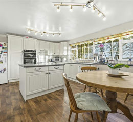 The property benefits from 'hub of the home' living room with wood burner set in feature fireplace, perfect for those winter evenings. The lounge flows seamlessly into a spacious dining room, which boasts a lovely southerly aspect, allowing natural light to flood the space. The heart of the home is further enhanced by a family room, providing an additional area for relaxation or entertainment, and a study that can serve as a fourth reception room.