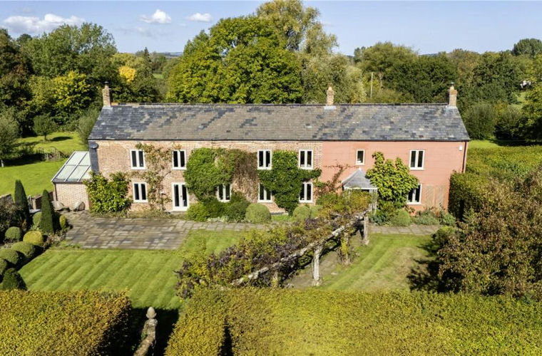 Set in the middle of beautiful gardens, Rendy Farm offers an utterly charming country home, with beautiful outlooks from all the principal rooms over the garden. Believed to date back some four hundred years, the property has been refurbished and extended to a high standard. The present owners have continued improvements in recent years – adding a master en suite, 14 in-roof solar panels and large battery storage (20kWh), new insulation throughout loft of main house, a side kitchen, a reconfigured boot room / utility room and a workshop space with extended patio.