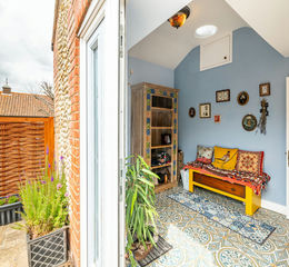1- 2 Barn Cottages is a clever conversion of an original steam engine shed and dates back to the early 19th Century. Tucked away in the heart of the super popular seaside town of Wells-next-the-Sea and located just a two minute walk from the quay, this flexible single storey home was originally configured as two cottages and now offers comfortable living as one residence, with the option to create a holiday annexe.