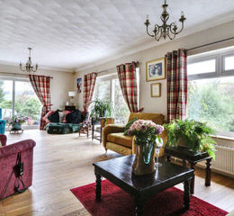 Set within approximately 7 acres of land, including 3.5 acres of gently sloping meadow, this impressive three bedroom bungalow is positioned along a peaceful, secluded country lane while remaining within easy reach of a traditional village pub. Surrounded by mature trees and shrubs, the property enjoys exceptional privacy and far-reaching hillside views.