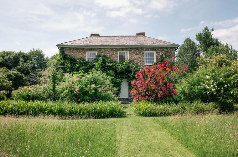 Surrounded by 18 acres of private grounds, Jays is an enchanting Grade II-listed house close to the Cornwall-Devon border. It was built in the mid-19th century, a fact attested to by its textured walls, hardy slate flags and elegant sash windows. It spans over 2,940 sq ft across two storeys, with panoramic and bucolic views. Inside, a delicate balance is struck between old and new: a predominantly pared-back palette showcases the building's period bones and is occasionally offset by a playful accent. The house sits at the centre of expansive grounds protected by a collection of traditional outbuildings, including two large stone barns. There are also two apple orchards, listed as ancient, which have been lovingly restored by the current owners.