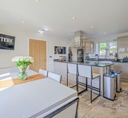 Kitchen Diner - 5.33m x 4.06m (17'5" x 13'3") - With a door from reception hall, fitted with matching wall and base units, granite worktops with matching upstands, eyelevel oven and grill, separate induction hob, stainless steel cooker hood over, Belfast sink, instant hot water tap, integrated fridge freezer, integrated dish washer, pull out pantry style drawers, wine cooler, space for dining table, recess spotlights, tiled flooring, double glazed window to rear, double glazed french door to front and two central heating radiators.