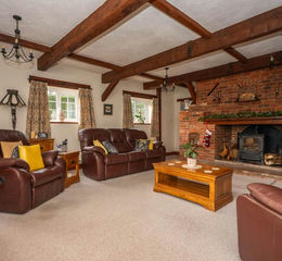 - Impressive Sitting Room With Exposed Beams And Brick Built Fireplace With Wood Burner.