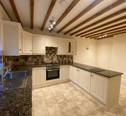 Fitted with a 3 piece suite comprising walk in shower cubicle with electric shower, low level, push button W.C., pedestal wash hand basin with mixer tap. extractor fan, beamed ceiling, heated ladder towel rail, shaver point and part tiled walls.