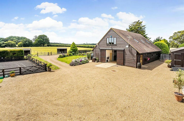 To the right of the barn is a smaller detached barn with an internal office and useful storage for machinery and a feed store. There are expansive parking areas to the front and side drive entrance for horse boxes/trailers and other vehicles.