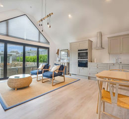 Built in 2023, this eco-friendly one-bedroom ANNEXE provides versatile accommodation, ideal for guests or as a peaceful home office. A spacious open plan SITTING ROOM with KITCHEN has bifold doors onto another terrace, bringing the 'outside in'. The DOUBLE BEDROOM is bright and spacious, and the bathroom is modern and contemporary with a large shower, W.C., and wash basin. The ANNEXE has its own Air Source Heat Pump ensuring the bills are kept to a minimum.