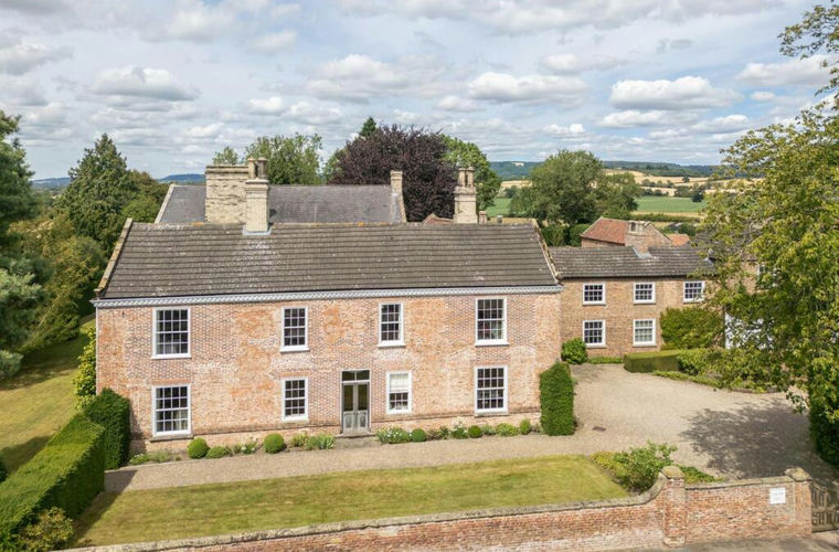 Superb Georgian country house with a walled garden, outbuildings, land and sweeping views to the White Horse of Kilburn.