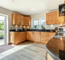 Kitchen / Dining / Family Room - 6.25m x 5.94m max (l shaped) (20'6 x 19'6 max (l s - Single drainer sink unit with mixer tap, cupboard under, range of base and wall mounted units, integrated dishwasher, fridge, cooking range with hot plates and ovens below, cooker hood above, granite worktops, two double radiators, spotlighting, side aspect window, fully glazed French doors through to the rear gardens and land with a lovely outlook.