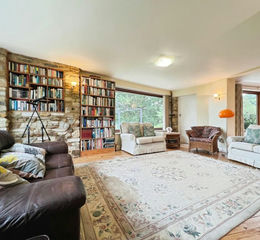The living room and dining room offer a light filled open plan space, maximised by the large picture windows that provide far reaching views over the valley. The room also boasts a snug area with log burning stove.