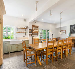 At the heart of the home is a classic farmhouse-style breakfast kitchen, complemented by a walk-in pantry, a separate laundry room, and a cosy conservatory, which offers exciting potential for extension— the current owners were considering a leisure suite with gym and swimming pool.
