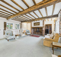 - Large dual-aspect living room with exposed beams