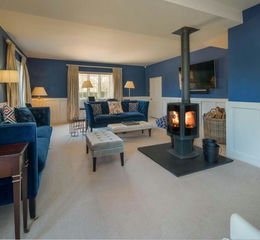 Snug/Dining Room - With fitted cupboards, fireplace with wood burning stove.
