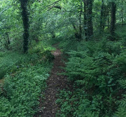Alternatively, you can turn left for Penboyr instead of climbing up the hill. Carry on for a short distance, to a lay bye opposite a field below the woodland, and go over the stile and along the footpath which climbs up through the wood, which will be all on the right hand side of the path,
