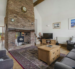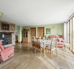 Lounge / Dining Room - Lounge area with doors to rear aspect leading into the garden, vaulted ceiling, dual sided multi-fuel burner separating the lounge and dining area, 2 radiators, solid oak flooring. Set of stairs leading to the first floor.