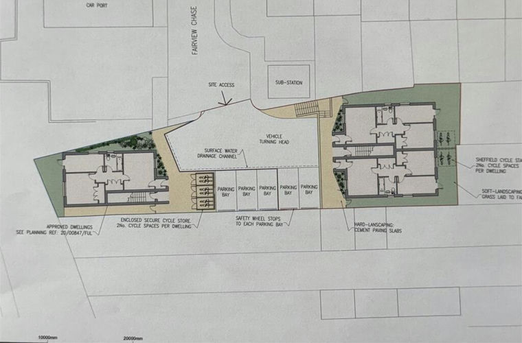 - Planning permission granted for block of three one-bedroom apartments and block of two one-bedroom apartments