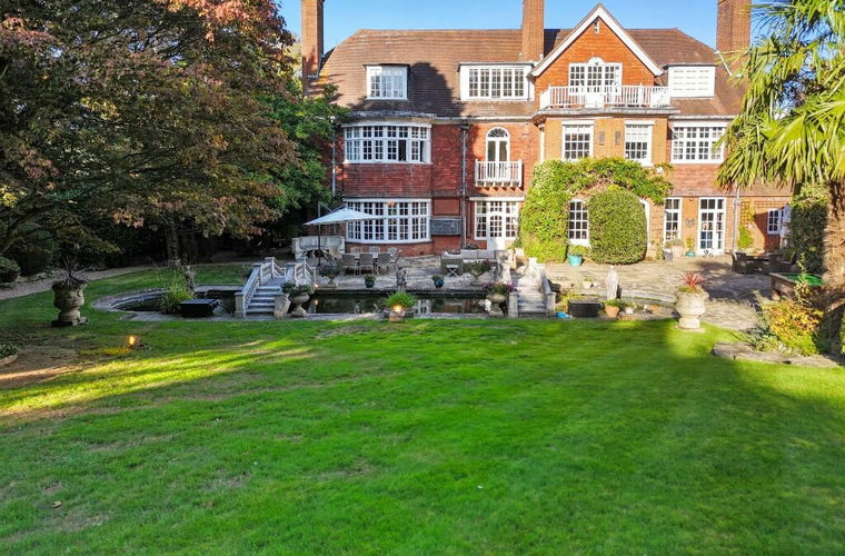 * To both the front and the rear of the property, there is an atmosphere of tranquillity coupled with a recurring element of the unexpected. Sympathetic landscaping has avoided excessive formality by preferring a miscellany of winding paths, hidden retreats and outbuildings. Planned precision is most evident in the yorkstone terrace and stone bridge spanning an ornamental pond before the spreading lawns and beyond. Out of sight of the house, the far side of a delightful laburnum avenue, the walled vegetable garden and high lawn are perhaps the most private parts of the grounds, and a replica of a village inn complete with bar and open fireplace overlooks the recently resurfaced hard tennis court. To the front, the grounds slope gently down towards Camden Park Road, which is almost completely obscured by an array of mature trees.