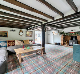 Inside, the house reveals a warm and characterful interior where period charm and modern comfort work beautifully together. Exposed beams, inviting fireplaces, and traditional cottage details create an immediate sense of homeliness, while thoughtful updates ensure the space feels bright, fresh, and practical for everyday living.