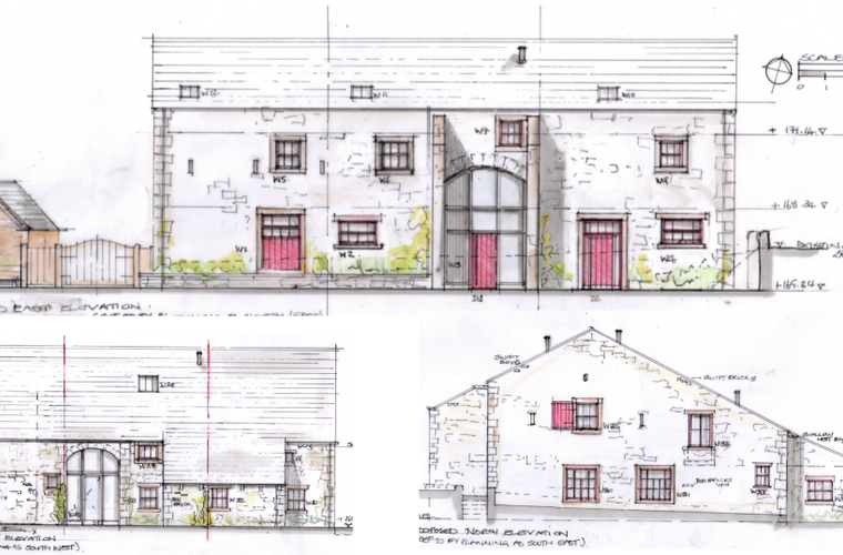 Superb opportunity to purchase a traditional stone barn to convert into three modern all inclusive properties. The barn is constructed from sandstone with a slate roof framed by stone quoins and wooden window and door frames including the iconic large cart house door, included in the design of property two. Internally the barn is split sections including a cowhouse with stalls and hayloft.