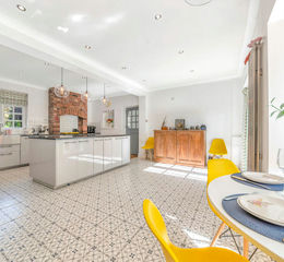 At the heart of the ground floor is a wonderfully spacious kitchen. In the middle of this contemporary space is a central island topped with black granite and surrounded by modern light grey wall and base units. Nicely tucked away in one corner is a 'Stanley' oil fired cooker which also fires the central heating, complimented by a standard oven along with an induction hob, integrated dishwasher and washing machine.