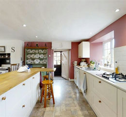 A charming four bedroom period farmhouse in need of some updating with beautiful rural views and no near neighbours. Believed to be approximately 350 years old, the property comprises well proportioned and spacious accommodation with the benefit of oil-fired central heating and double glazed windows throughout. The large kitchen/breakfast room has fitted units with a built in oven and gas hob. The dual aspect sitting room has a large inglenook fireplace with original bread oven and a wood burning stove, whilst the dining room has a door leading out to the south facing patio and gardens. The conservatory overlooks the gardens and takes in the views across the fields. Upstairs there are three double bedrooms and a smaller fourth bedroom (potential for en-suite), all served by a family bathroom.