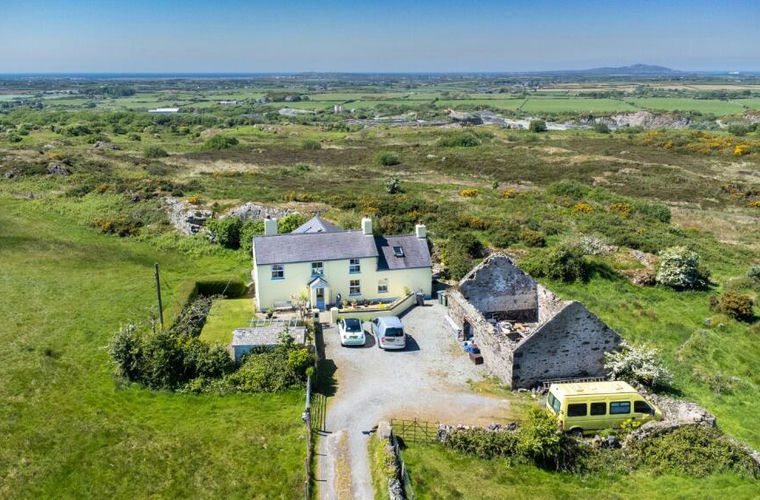 Clegir Farm sits in approx. 0.08 acres in an elevated position above Gwalchmai, enjoying panoramic views and surrounded by fields. The detached former farmhouse has been extended by the current owners, who also secured planning permission to convert the outbuilding into an 1-bedroom annexe (HHP/2024/122). The home enjoys views garden and patio’s to all sides with ample off-road parking for multiple vehicles. Inside you’ll find a sitting room with inglenook fireplace featuring a log burning stove and exposed beams. Off the sitting room is the kitchen with bespoke wooden kitchen units and solid wood worktops. The room features exposed beams, tiled floors and a range cooker. To the rear of the property is a useful utility room with sink and separate WC. The family bathroom can be accessed off the utility room, with floor to ceiling tiles, walk-in shower, and freestanding feature bathtub. Moving to the other side of the property you’ll find a cosy living room with log burning stove for those colder nights. Off the living room is a sizeable sun room which enjoys delightful countryside views and features a half-vaulted ceiling. Upstairs you’ll find 4 bedrooms with two having Juliet balconies to soak in those views. The home is heated via LPG central heating and has uPVC double glazing. Outside the property enjoys lawned gardens, a summerhouse/workshop, several patios and a raised area of decking – you’ll be spoilt for choice on sunny days. To the front of the property is a large gravel area, allowing for multiple cars to park and turn. Additionally, there is a derelict outbuilding which has planning permission to be converted into a 1-bedroom annexe for ancillary use. The full details can be found on the Anglesey Planning Portal using reference HHP/2024/122 or by asking the office for a copy of the details. This rural home could be your perfect sanctuary, just a short drive from the A55 and the village of Gwalchmai.