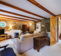 Entering the home from the front, you arrive in a large sitting room, full of character, featuring a wood-burning stove at the far end. Adjacent to this reception room is another generously sized space, currently serving as a charming dining room. Both reception rooms are filled with natural light and benefit from exposed stonework and beams. Off the dining room is a well-equipped kitchen, which leads into a large conservatory overlooking the gardens. Completing the ground-floor accommodation is the spacious family bathroom, located next to the original staircase leading to the first floor.