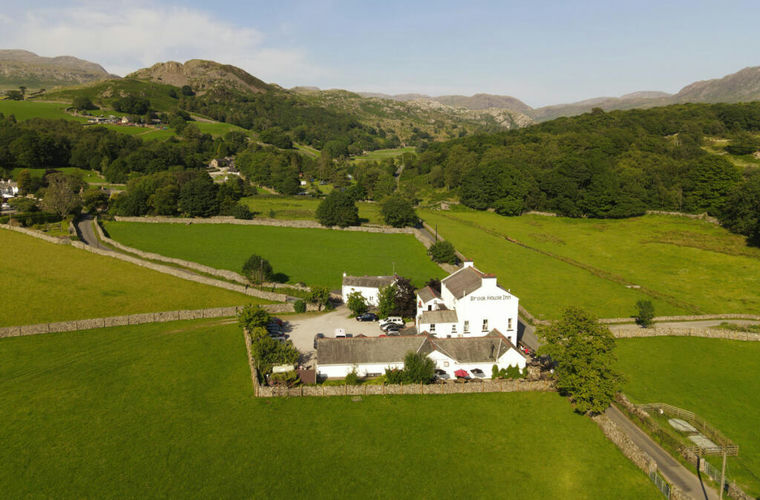 Brook House Inn sits on a 0.35-acre plot, with a large car park