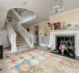The property is approached via a most impressive tree lined gated driveway which sweeps up to the front of the property and onto a large gravelled front drive which wraps around the property to a rear courtyard with central water fountain. There are beautifully established formal gardens and grounds wrapping around all sides of the property with over 12.5 acres in total. The formal gardens predominantly lie to the front of the property with two large natural ponds and a sunken tennis lawn. Surrounding the gardens are well established boundaries with mature trees and hedgerows and there is a decorative bandstand overlooking the larger of the ponds providing an ideal viewing platform and pleasant space for outdoor seating. There is a formal 6.2 acre paddock which houses the helicopter hangar and landing pad as well as a horse gallop which surrounds the perimeter of the field. There is a vast range of outbuildings and stabling which is all accessed off a central block (truncated)