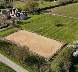 Externally the paddocks, grounds and outbuildings are unique for a modern home with outstanding and far reaching rural vistas with a great degree of overall privacy. A valuable rear driveway is ideal for equestrian usage as well as the storage of horse boxes, trailers, outdoor equipment and caravans. A competition level, fenced riding arena sits beside a lower garden paddock. Neighbouring this is a gated yard with additional stabling, hen house, hay barn and tractor storage, which is subtly tucked away behind the detached double garage. Beyond the considerable and enclosed landscaped lawn, situated directly behind the house, is a further large paddock for livestock with additional stabling and yard. The entirety of the plot is confined by established hedgerow, post and rail fencing.