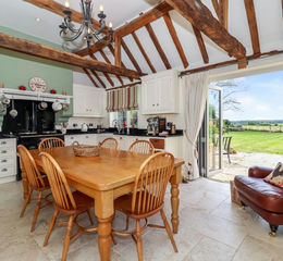 Originally converted in 2003, Hay Barn has been expertly designed to retain all the features and character of the original building while providing spacious and well-proportioned living spaces. The heart of the home is the large kitchen/breakfast room, boasting a vaulted ceiling, exquisite exposed beams, an Aga, ample storage, and a beautiful natural stone floor. A delightful secret wine cellar is easily accessible through a hidden hatch in the floor, adding a touch of mystery and charm.