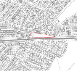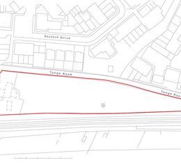 Site Description - The site is located within MurstonSittingbourne and is situated between Tonge Road and the Chatham Main Line. It is roughly triangular in shape and extends circa 0.48ha. The Site primarily comprises a yard area and a grazing paddock. The yard is positioned at the wider, western end of the site and benefits from vehicular access onto Tonge Road. To the West the site is bound by a footpath that connects Tonge Road to Peel Drive via an underpass of the railway line. From the widest point, the site narrows in an easterly direction.