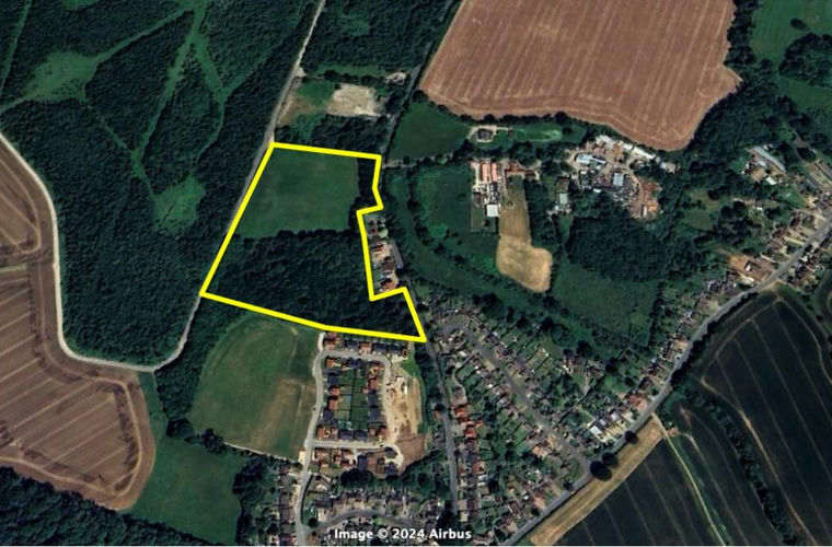 The site currently comprises an open grassed field extending to approximately 11.8 acres STS. To the north is a scaffolding yard, immediately to the south is an area of woodland, beyond which is a recent development carried out by Abbey Developments (see second photo).