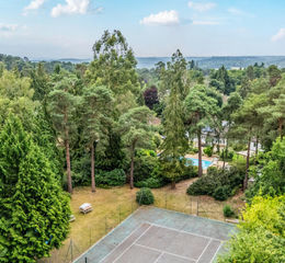 To the rear, a broad terrace adjoins the house, leading to a heated swimming pool with surrounding paved area, a Wendy house, and a hard-court tennis court. A south facing covered pergola offers an additional outdoor entertaining space.