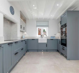 Double glazed window to front elevation, beamed ceiling and LED downlights. The kitchen was refitted in 2023 with a range of painted, solid wood, shaker design units comprising base cupboards and drawers, including deep hand drawers, with quartz working surfaces above and splashback returns to the wall. Belfast style sink with chrome 4:1 boiling/filtered water mixer tap, eye level wall mounted cupboards. Under unit lighting and low level plinth lighting. Integral appliances include; NEFF wine cooler, automatic washer/dryer, dishwasher, fridge freezer, two NEFF ovens including fan oven and microwave combination oven. NEFF induction hob with quartz to the splashback recess and extractor over with concealing beam. The kitchen units also incorporate two tall larder cupboards. Ceramic tiled floor, wood framed double glazed door leads to the rear garden. Wall mounted vertical radiator.