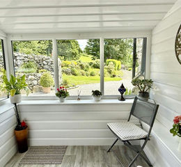 The property is approached via a private driveway which leads to a gravel parking area. There is a paddock to the front of the property offset by a level lawn which gives access to the front porch and the workshop. A wall garden to the rear continues around to a second lawn with access to the rear paddock/meadow. There is a natural freshwater stream which runs through the centre of the property with a slate bridge leading to a wood store and giving access to the side paddock which rises to the main road. this paddock is currently used as a pony paddock by a neighbour. There are several dry stone walls and rugged terrain that gives this property unrivalled character.