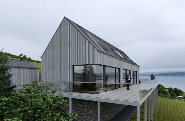Site OverviewThe development site comprises a substantial rectangular area of land, gently sloping from north-east to south-west, offering ideal topography for a modern rural home. The location enjoys a peaceful, private setting with striking views toward the shoreline.