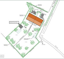 Identified on the Sale Plan is the opportunity for a buyer to purchase 0.87 hectares (2.15 acres) of bare land to the north of the building (hatched blue) and/or 0.62 hectares (1.52 acres) to the south east of the plot (hatched yellow).