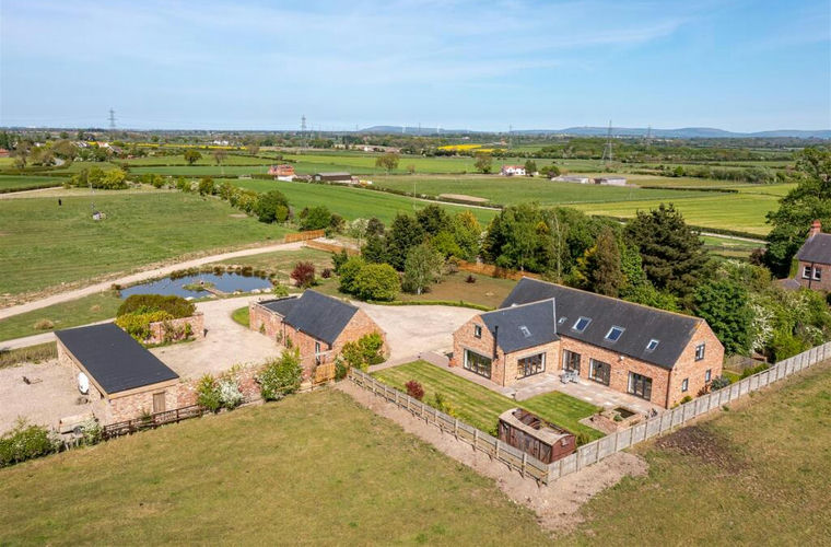 Meadowfields is an exceptional, detached family home with four en suite double bedrooms, three of which benefit from dressing rooms. Set within 7.7 acres, the property includes outbuildings, a detached garden studio/entertaining space, garage, paddock, lean-to store and stabling and a yard with commercial and equestrian potential.