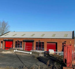 A steel portal frame unit constructed with part brick / part glazed elevations with a pitched roof incorporating roof lights above.