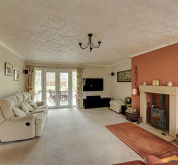 Lounge - 6.57 x 4.50 (21'6" x 14'9") - A bright and spacious lounge which has uPVC windows and French doors leading to the sun room / conservatory. There is fitted carpet throughout. There is also an attractive wood burning stove with sandstone surround and hearth.