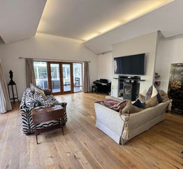 The accommodation is housed in an impressive kitchen diner with a floor-to-ceiling window to the front and an exposed stone wall. It features a range of wall and base units, an island with a sink and drainer, and a lounge with ambient lighting, a fireplace with a log-burning stove, and direct access to the garden and conservatory. The conservatory has underfloor heating, double-glazed patio doors and windows on the sides and rear, and a glass roof, making it a usable space year-round. There¿s also a ground-floor study that can be used as a fourth bedroom and has doors opening onto the garden. The master bedroom has a built-in wardrobe/dressing area and leads into an ensuite wet room with underfloor heated tiled floors, a shower area, a WC, and a wash basin. The utility room off the ensuite contains sink, plumbing for washing machine and boiler.