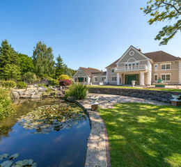 The outdoor garden space is where this home truly excels. Highlights include a heated swimming pool with waterfall feature, a fully equipped outdoor kitchen, a private gym, a full-size floodlit tennis court, a children’s play area, and two picturesque lakes punctuated along the way by footpaths and footbridges alike. Every inch of the grounds has been impeccably maintained to the highest of standards.