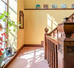 Steps lead down off the inner hall to the large cellar that has four good size rooms for storage, freezers and workshop/ studio use.
