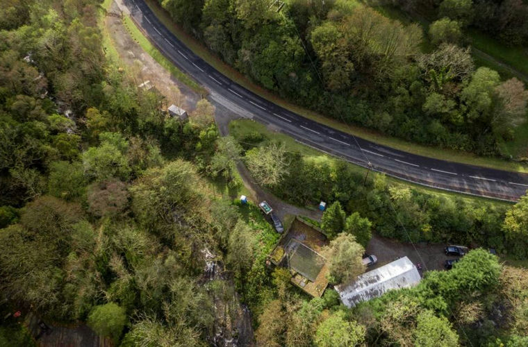 This deep 2 Acre wooded site runs adjacent to the A487 with the Deri River running below and grassed verge to the highway. There are 2 accesses off the highway to the site which includes track formed from the former Quarry tramline running within the site.