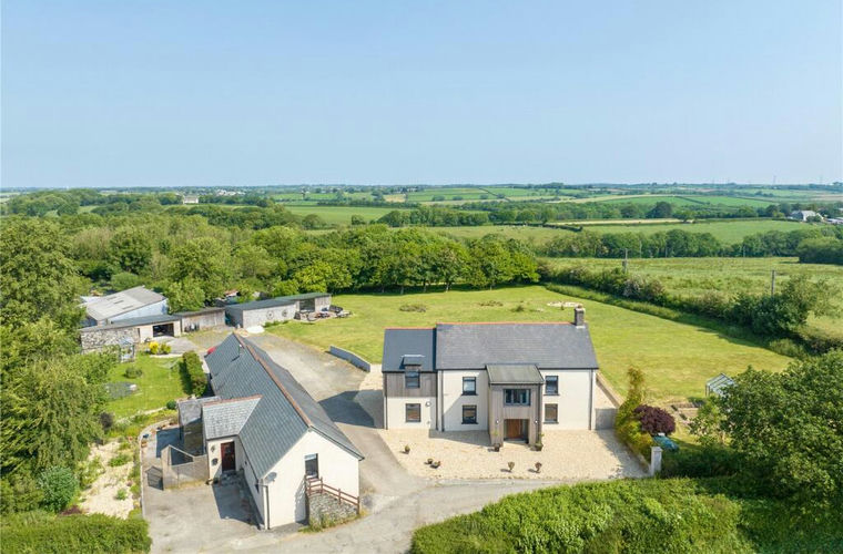 Set within approximately 2 acres of private, wraparound grounds, the estate enjoys captivating views across its landscaped gardens, paddocks and enchanting woodland. The outdoor environment is complemented by an excellent collection of outbuildings, including a double garage, stone barn, open-fronted storage barn, two workshops and a studio—ideal for discerning buyers seeking space for leisure, creativity, small-scale agricultural or business pursuits.