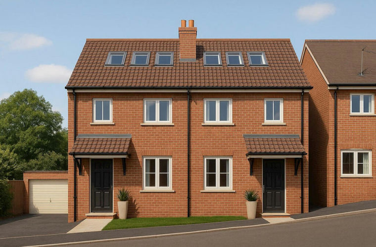 A site measuring approximately 101.6 sq.m with planning permission for the demolition of a garage and the side extension to 38 Toms Croft and the erection of two x three strorey three bedroom semi-detached houses