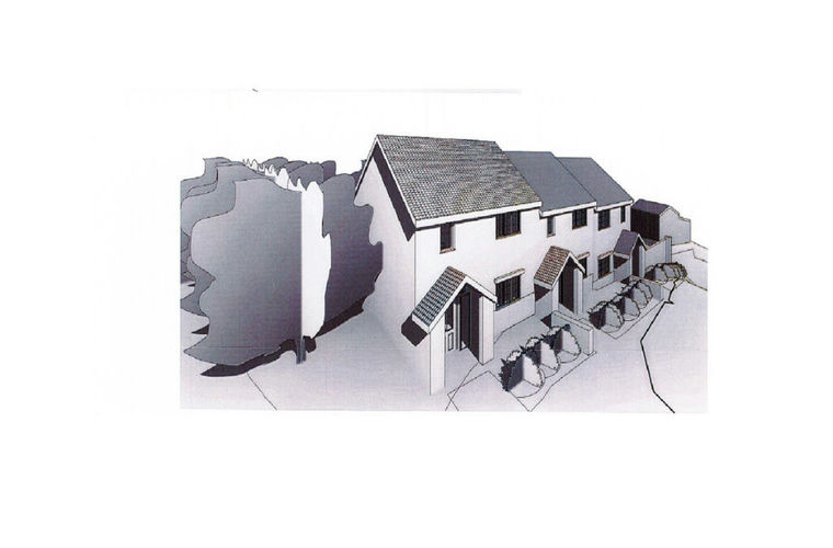 Planning has been granted for two, two bedroom houses alongside a three bedroom home - evidently both with parking and gardens.